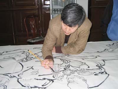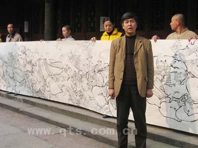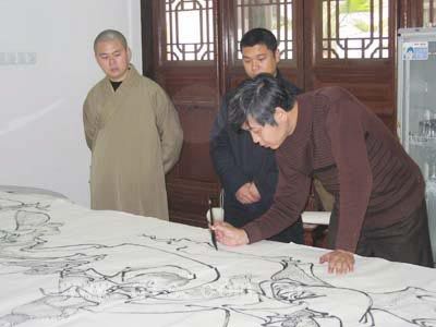 当代著名画家唐天源在七塔禅寺创作完成大型线描作品《十八罗汉图》