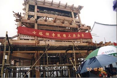 2002年10月14日,七塔禅寺隆重举行鼓楼奠基法会。寺院都监成峰法师、监院可祥法师、台湾玄奘寺住持印德大和尚主法,僧俗四众200多人参加法会。七塔禅寺鼓楼新建工程正式全面启动。