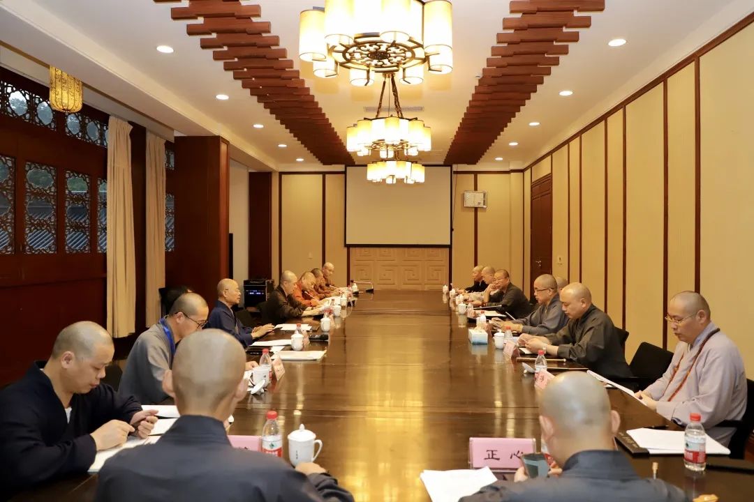 浙江省佛教协会会长光泉法师莅会指导,副会长、专委会主任可祥法师,秘书长金幸祥,专委会副主任界隆法师,专委会成员戒非、门一、定光、庆振、如修、智根、乘心、法弘、明禅、净旻、镇念法师参加会议。会议由界隆法师主持。