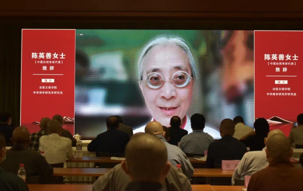 ▲中国台湾学者代表中华佛学研究所陈英善研究员致辞