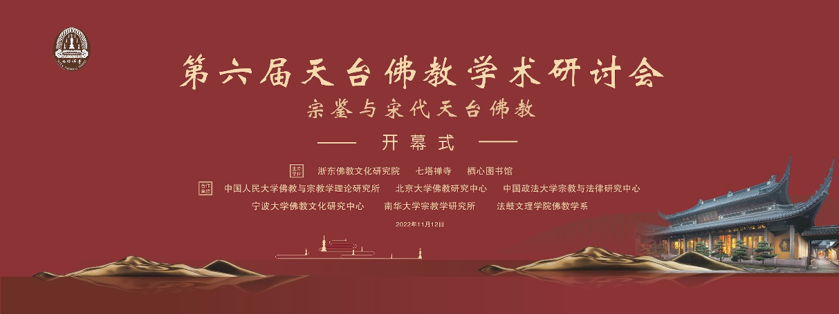 2022年11月12日上午9时,第六届天台佛教学术研讨会在宁波七塔禅寺报恩大讲堂拉开序幕,本届研讨会以“宗鉴与宋代天台佛教”为主题,在延续前五届研讨会主旨的基础上,进一步深入挖掘宋代天台佛教的精神标识和文化精髓。
