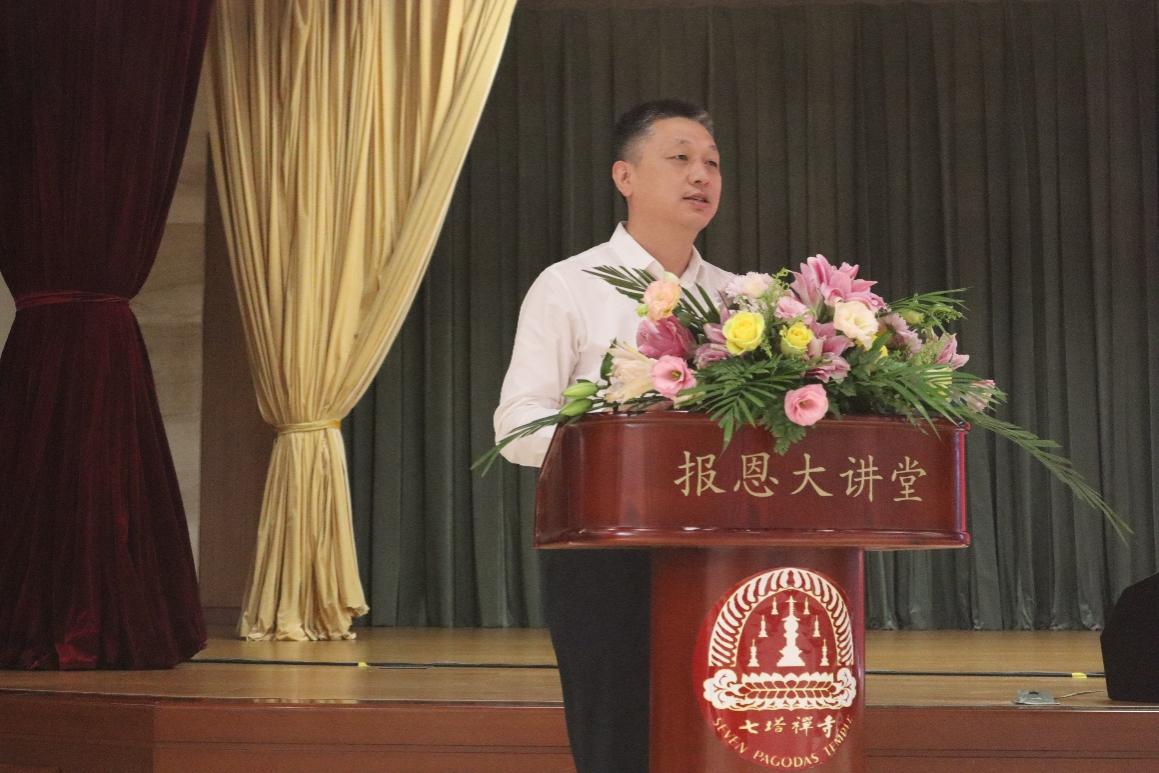 周悦德副局长代表宁波市民宗局向多年来关心、支持宁波民族宗教工作的各界人士表达了衷心感谢,表示宁波市民宗局将始终坚持以党的二十大精神为指引,全力支持佛教界践行中国化方向,积极引导宗教与社会主义社会相适应;同时热烈祝贺第六届天台佛教学术研讨会顺利召开,充分肯定了七塔禅寺连续召开六届天台佛教学术研讨会对于天台佛教的历史研究和当代传播的重要意义。最后,他向本次研讨会的召开提出了三条具体建议:其一,要深入学习贯彻落实党的二十大精神,坚持宗教中国化方向;其二,持续加强佛教文化建设,助力文化润教;其三,发挥佛教优势,主动服务大局。
