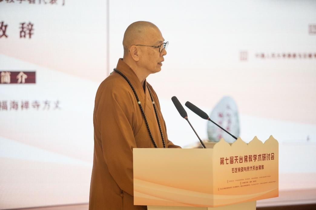 2023年11月18日上午9时,第七届天台佛教学术研讨会在宁波七塔禅寺报恩大讲堂召开。
