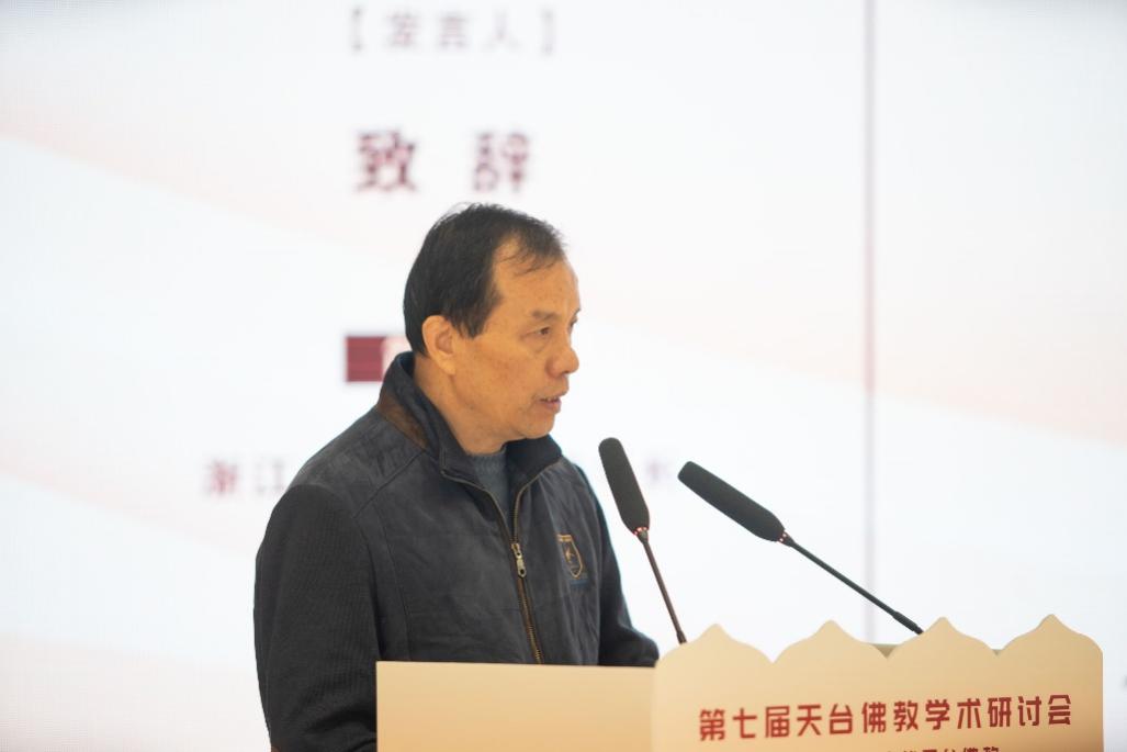 作为合作方代表,张风雷教授在致辞中首先向与会领导、法师和学者的莅临表示感谢,向七塔禅寺和浙东佛教文化研究院、栖心图书馆连续举办七届天台佛教学术研讨会表示敬佩。他特别提到,已故佛学专家方立天教授曾提出,宗教的本质是文化,是信仰性的文化,佛教在当代社会应发挥其独特的文化功能,造福于社会,有益于人群。这既是对佛教历史文化传承发展的深刻总结,也是对当代佛教中国化的方向指引。七塔禅寺作为都市佛教的代表,在文化立寺的道路上迈出了坚实的步伐,为新时代坚持我国宗教中国化探索了实践路径、做出了示范楷模。最后,张教授高度肯定了本届研讨会主题人物石芝宗晓及其著作的学术价值。