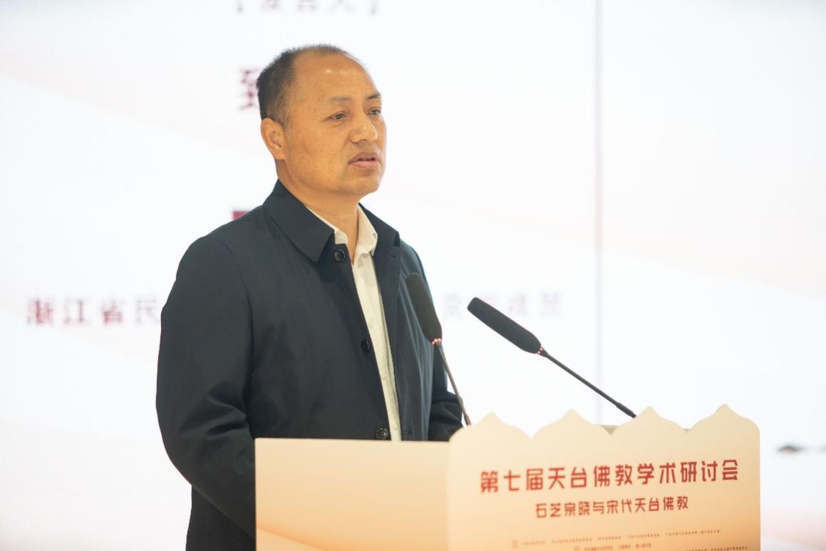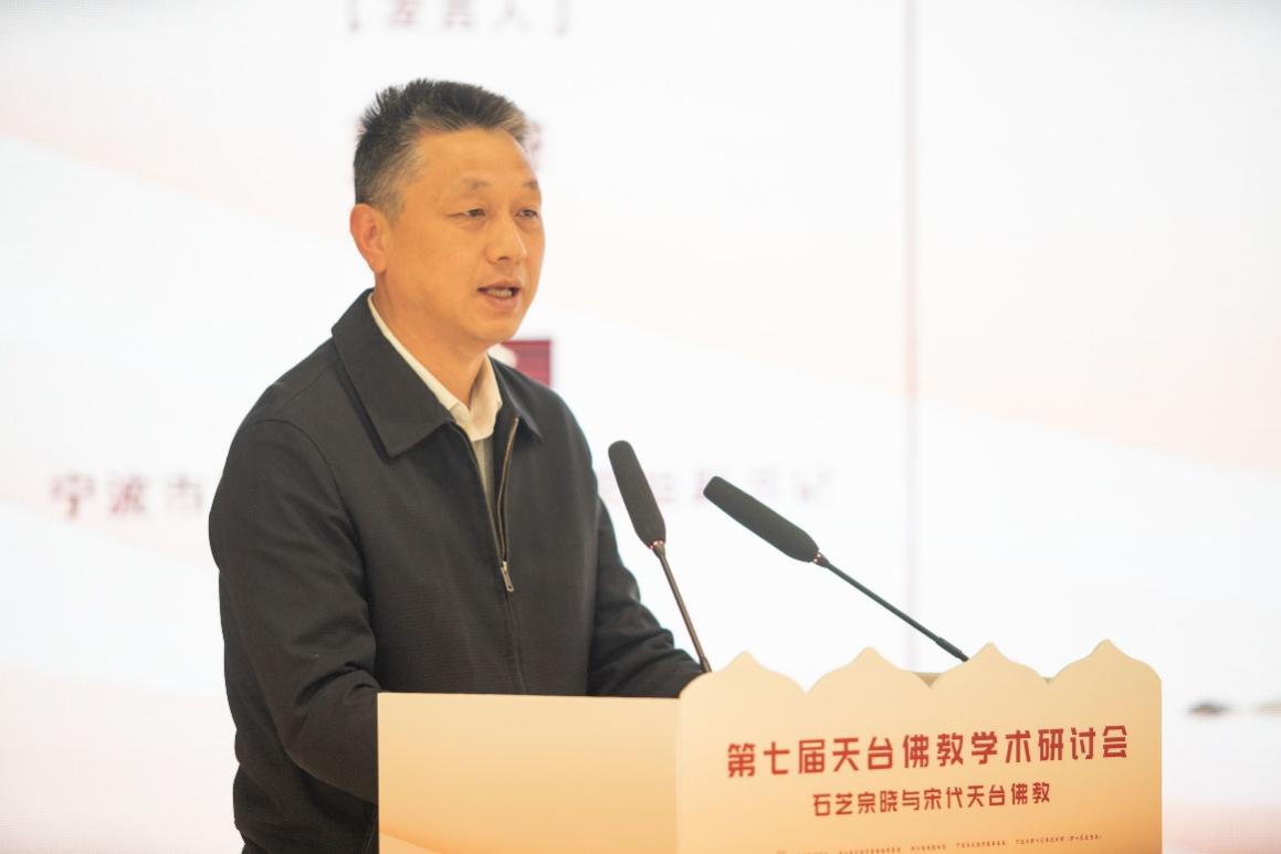 周悦德副局长代表宁波市民族宗教事务局,对浙东佛教文化研究院、七塔禅寺、栖心图书馆连续多年举办的天台佛教学术研讨会表达敬意,表示宁波市统战部、民宗局将始终坚持以党的二十大精神为指引,全力推动宗教事务蓬勃发展。最后,他向本次研讨会的召开提出了三点具体建议:一、推动党的二十大精神在宁波佛教界落地生根,坚持佛教中国化方向;二、加强文化建设,为培育和践行社会主义核心价值观提供思想资源和精神指引;三、主动担当社会责任,促进佛教健康发展。