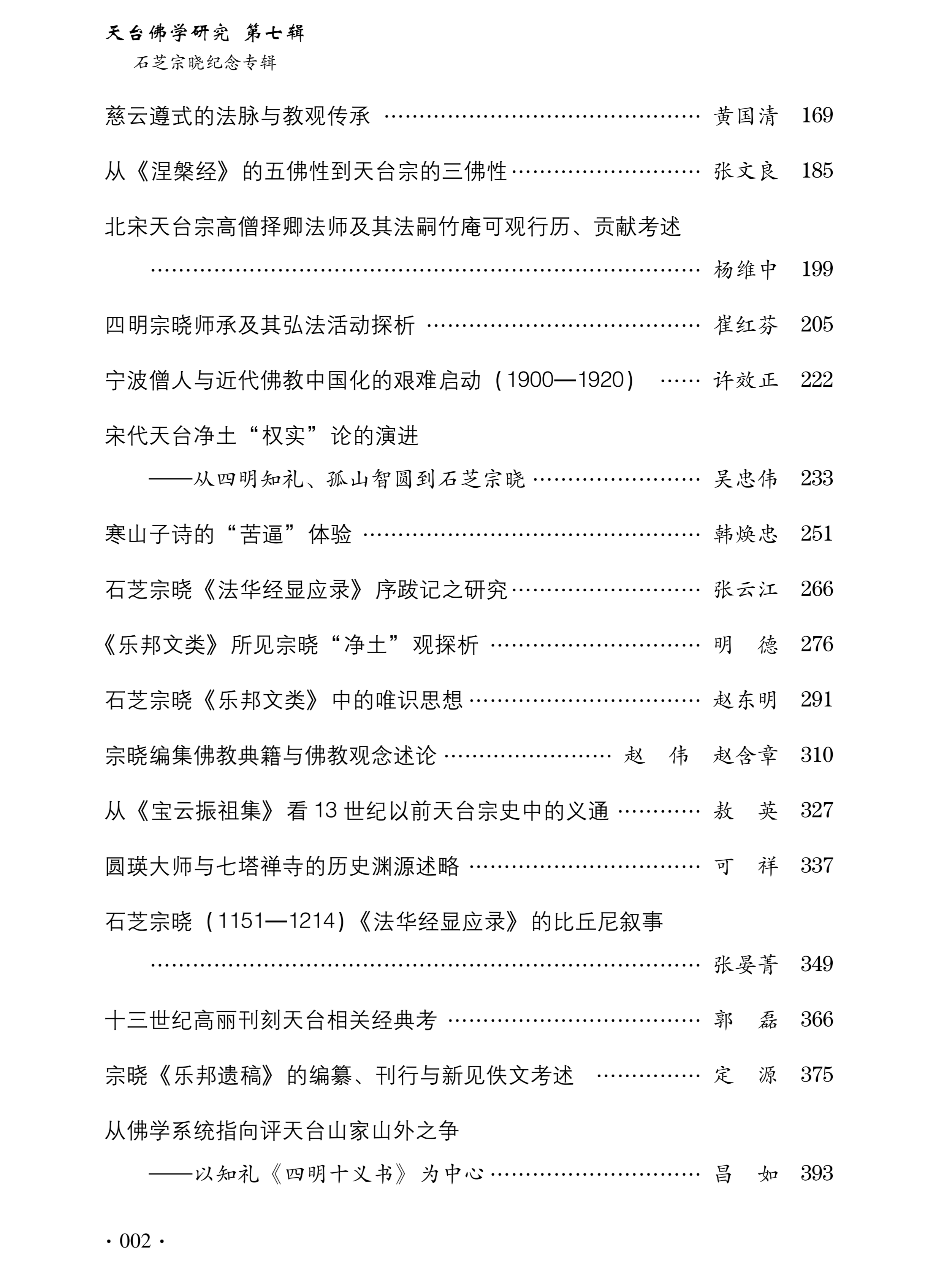 石芝宗晓作为宋代重要的天台宗高僧,其文献编纂的严谨、教观体系的完备以及文化视野的开放,为研究宋代佛教史、思想史乃至东亚佛教交流史提供了重要文献基础与观察视角。本专辑的出版,不仅深化了学界对宗晓及其时代背景的认识,也为重新审视天台宗传统的历史定位与当代价值提供了新的启发。