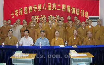 本站讯: 培训班集体照 7月11日,七塔禅寺在新装修的西厢房二楼教室举行了开学典礼,第八届第二期报恩培训班