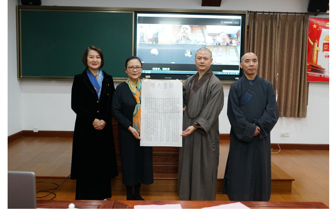 2022年11月20日上午10点,毛燕萍楷书条幅《郁伟年〈秋意七塔〉》捐赠仪式暨“秋意七塔”朗诵活动在七塔禅寺禅学堂二楼教室举行。