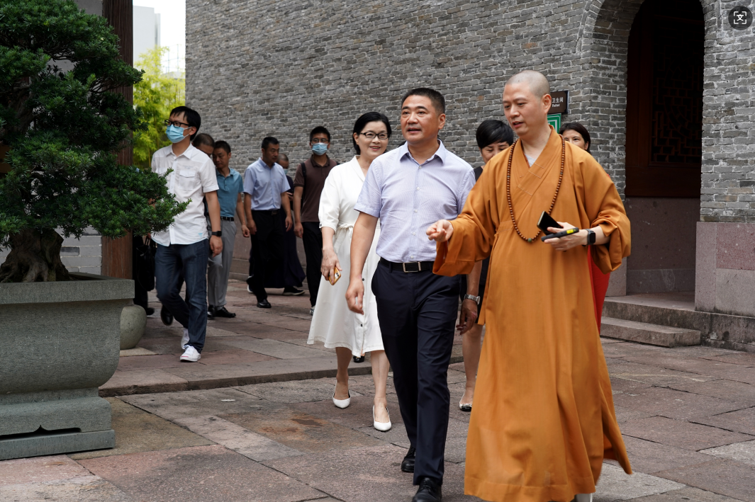 2022年8月31日下午,浙江省委统战部副部长、省工商联党组书记徐国龙带领省督察组成员,在宁波市委统战部副部长、市民宗局局长金黎萍等人的陪同下,莅临七塔禅寺开展督查工作。