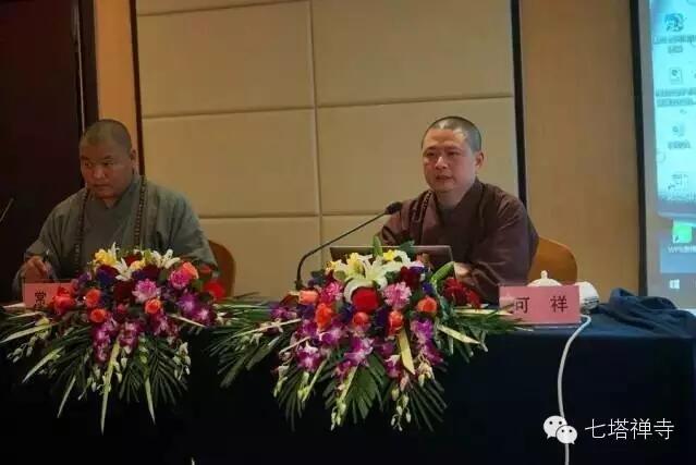 2016年3月21日下午,七塔禅寺住持可祥法师应邀为宁波东钱湖旅游度假区佛教协会第二次代表会议全体代表作佛学讲座,以“深信佛法僧三宝、勤修戒定慧三学”为题,在近三个小时的讲座中,法师从僧俗修行角度出发