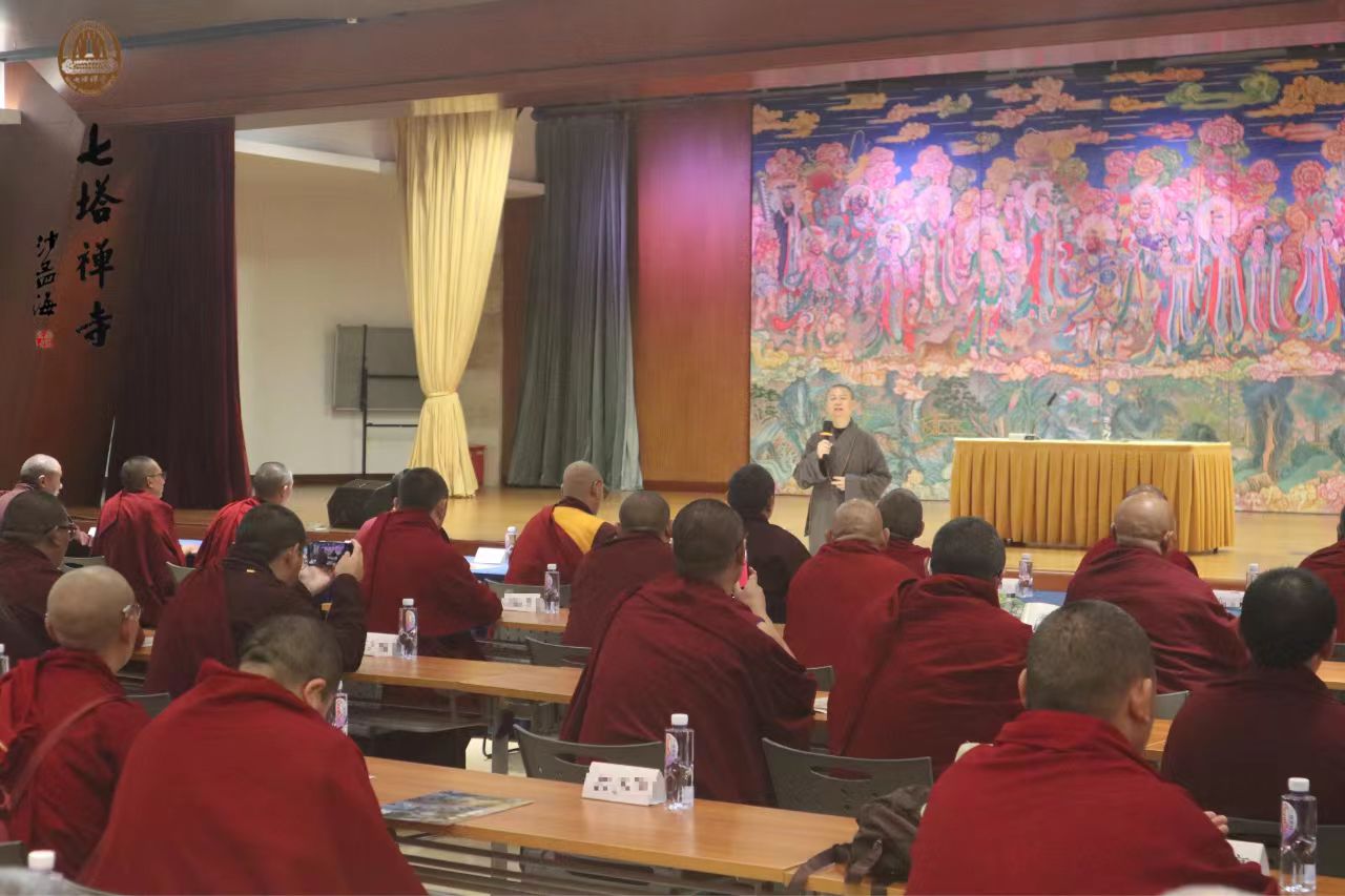 2025年1月11日上午,应浙东佛教文化研究院邀请,中国佛学院栖霞山分院教师静贤法师在七塔禅寺禅学堂教室作《北宗禅嵩山普寂系弟子弘法南岳散论》讲座,浙东佛教文化研究院副院长、七塔禅寺监院定光法师主持讲