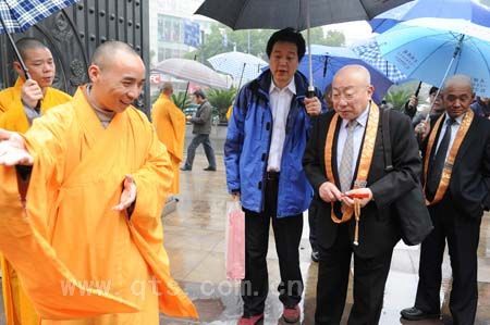 2011年4月10日晚,中共浙江省委统战部部长汤黎路先生莅临七塔禅寺视察工作,参观了西北角工地及普门柱,悉心听取了可祥大和尚关于寺院扩建工程、普门柱建设等工作汇报,对寺院建设成绩表示肯定与赞赏。