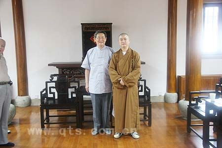 可祥大和尚与楼宇烈教授合影 可祥大和尚与杨曾文教授合影 与各位教授亲切交谈 宾主双