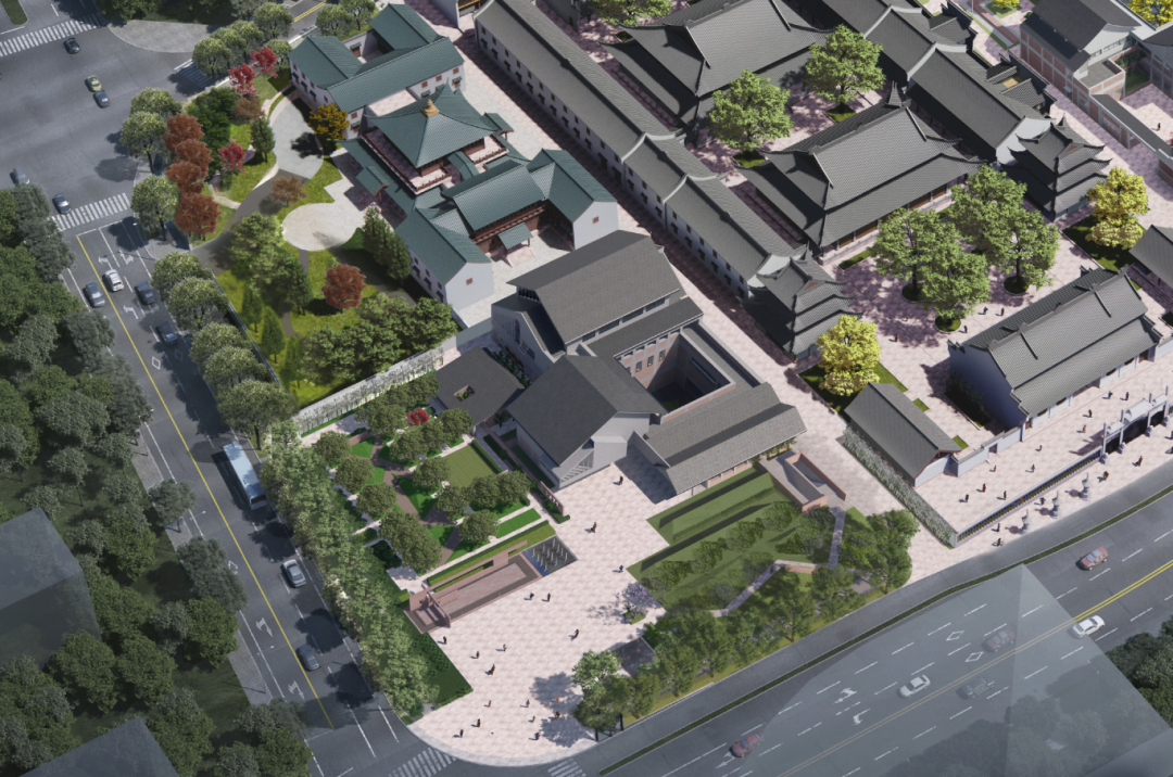 七塔禅寺周边“三馆三园”(栖心图书馆、东津艺术馆、素斋馆、银杏园、桂花园、樱花园)项目是千年古刹建设都市寺院的重大工程,也是道场践行人间佛教理念、积极回馈社会的有力举措。项目自2016年开始谋划,2020年着手设计、2022年正式动工,2024年土建告竣,期间得到政府部门的大力支持,凝聚了十余家企业的协同力量。