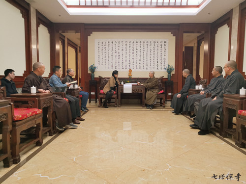 2020年1月6日下午,宁波市委统战部副部长、宁波市民宗局局长金黎萍,在宁波市委统战部民宗处处长张伟,宁波市民宗局办公室主任翁凌展的陪同下,莅临七塔禅寺走访慰问,并与七塔禅寺执事团队亲切座谈。