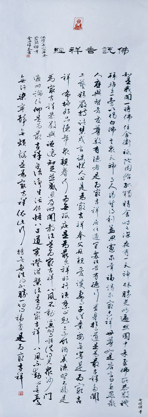 这一年中,能与大家一同在观音道场、千年古刹七塔禅寺抄经可谓因缘殊胜,感恩珍惜。同时,我为学员们在这一年里取得的进步感到欣喜。抄写佛经,亲近经典,可开启智慧,降伏烦恼,愿大家在抄经中获得安宁和吉祥。