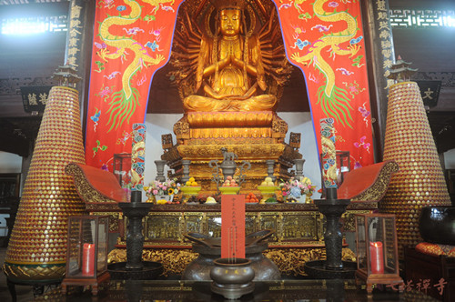 随后,全体人员移步至圆通宝殿内,止语收摄身心,参加祈福法会。