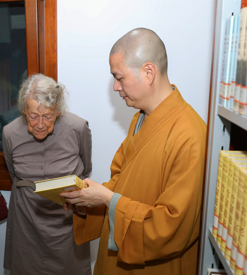 2018年9月17日,德国慕尼黑大学印度伊朗学系阿德尔海特·梅塔(Adelheid Mette)教授在复旦大学文史研究院刘震教授等的陪同下参访七塔禅寺,受到住持可祥法师等热情接待,宾主双方进行了亲切友好交流。