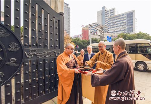 2017年12月23日,全国政协常委、中国佛教协会会长、北京龙泉寺方丈学诚法师在宁波市委常委、鄞州区委书记胡军陪同下,莅临七塔禅寺视察指导工作,受到七塔禅寺住持可祥法师及两序大众的热情接待。