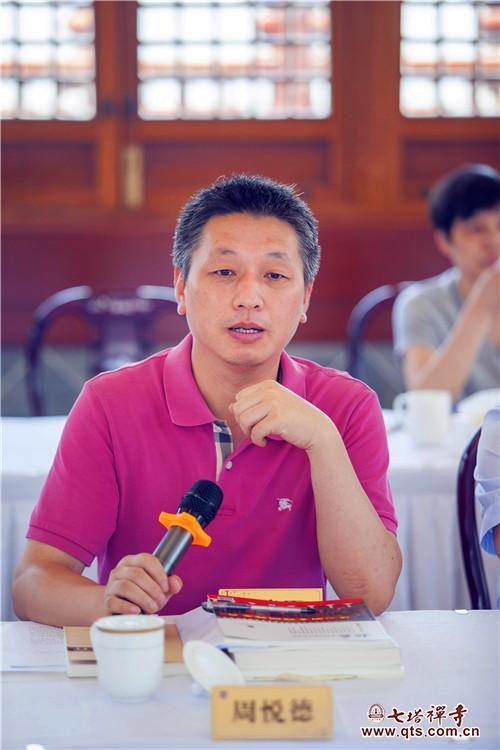 参观结束后,宾主双方在禅学堂二楼会议室座谈交流。可祥法师代表七塔禅寺僧俗两众对上海市民宗委房剑森书记、花蓓主任一行莅临本寺调研考察寺院管理工作表示热烈欢迎,向省民宗委钟昌明副主任、办公室副主任周军,市民宗局周悦德副局长,鄞州区区委朱法传副书记,鄞州区区委常委、统战部部长陈虹女士,鄞州区民族宗教事务局局长严伟强、副局长朱明霞等与会的省市区领导长期以来对本寺各项事业建设的关心和帮助,表示了衷心的感谢。可祥法师向考察团重点介绍了七塔禅寺的发展历史、主要成绩及未来目标。他说三十多年来,七塔禅寺依照都市佛教现代丛林发展理念,在自身建设和服务社会等方面做了大量工作,在制度建设、学修建设、财务管理、档案管理、生态寺院建设、文化建设等方面都取得了显著成绩。除此以外,七塔禅寺还以城市为依托积极开展讲经交流活动,以栖心图书馆为平台,创建报恩大讲堂系列公益讲座活动,均取得良好效果。同时,七塔禅寺还不忘回报社会,长期以来,累计为抗震救灾、抗洪抢险、扶贫济困、慈善捐赠、佛教光明行、五水共治等捐款1000多万人民币,受到宁波市慈善总会、宁波市扶贫办等单位的充分肯定。他特别强调,未来将继续以“人间佛教”思想为指导,将七塔禅寺建设成为一座学修一体的佛教寺院、现代化的社区大学、高深的佛学研究机构、展示中国文化的殿堂,让它成为历史文化名城宁波对外交流的名片。