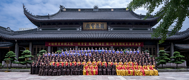 2016年5月25日~31日(农历四月十九日至二十五日),七塔禅寺常住隆重举行了庆祝寺院西扩工程——禅学堂、报恩大讲堂、栖心图书馆圆满竣工启用诵念《法华经》七永日回向法会。常住四众弟子、甬城信众、义工护法等300余人参加了此盛会。