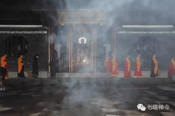 2015年12月14日(农历十一月初四)晚6:00,七塔禅寺隆重举行“启建十方法界圣凡水陆普度大斋胜会道场”洒净熏坛仪式,法会由住持可祥法师主法,并领众法师与功德主持诵《大悲咒》,以杨枝净水遍洒本次水陆道场所设的各大坛口,通过诵咒净坛,令此道场清净庄严。整个法会如法如律,隆重庄严。