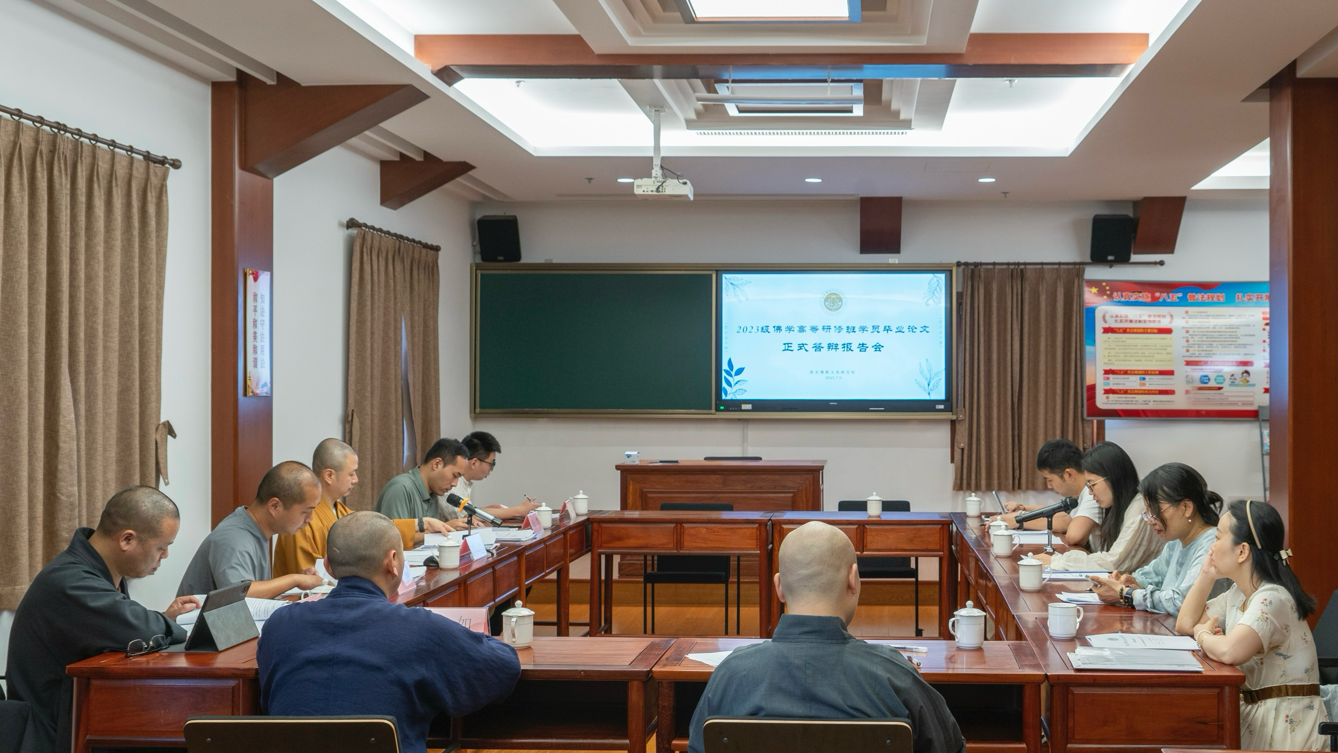2025年7月5日上午,浙东佛教文化研究院2023级佛学高等研修班结业论文答辩会在七塔禅寺禅学堂二楼教室顺利举行。