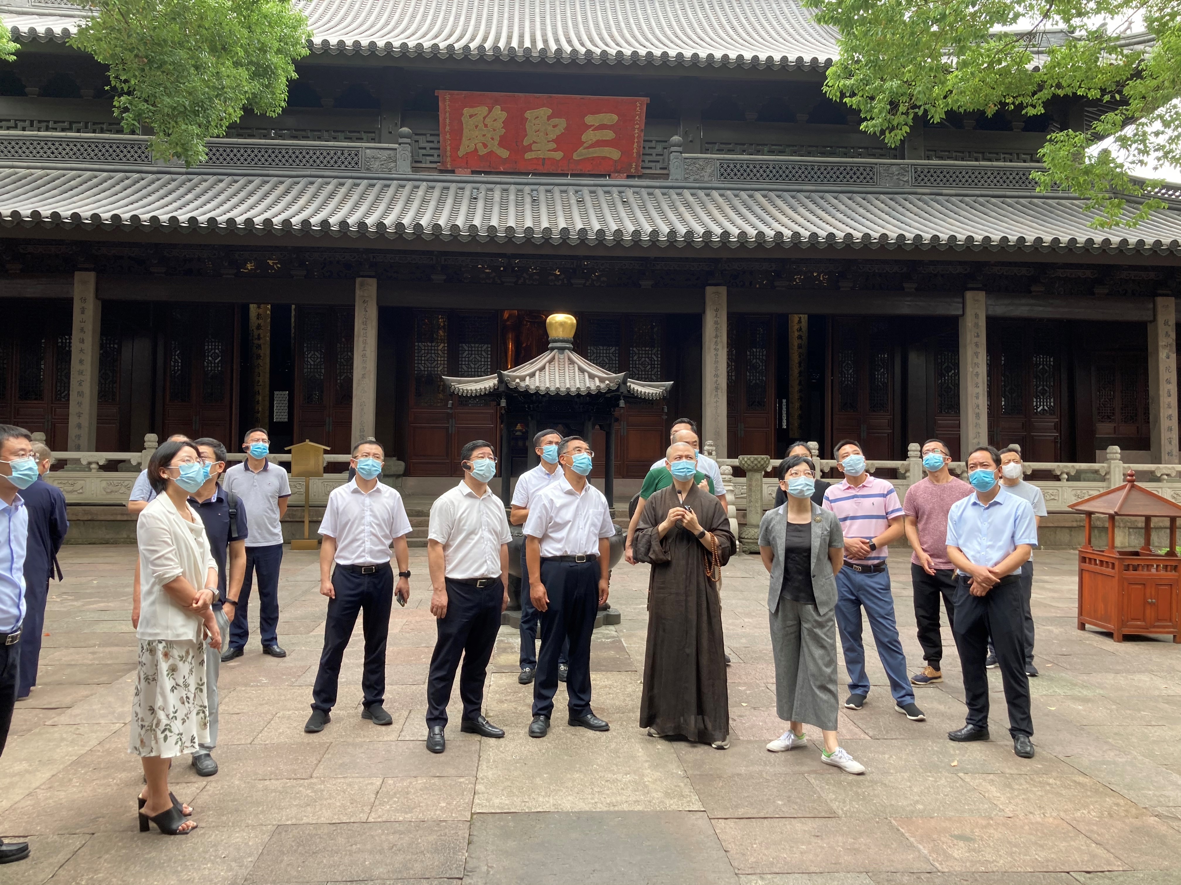2022年9月27日上午,宁波市督考办第三调研组全体成员在市督查专员周忠贤、包晓莹的带领下莅临七塔禅寺,调研鄞州区“精特亮”创建工作,鄞州区委常委、统战部部长戴华祥等有关负责人陪同考察。