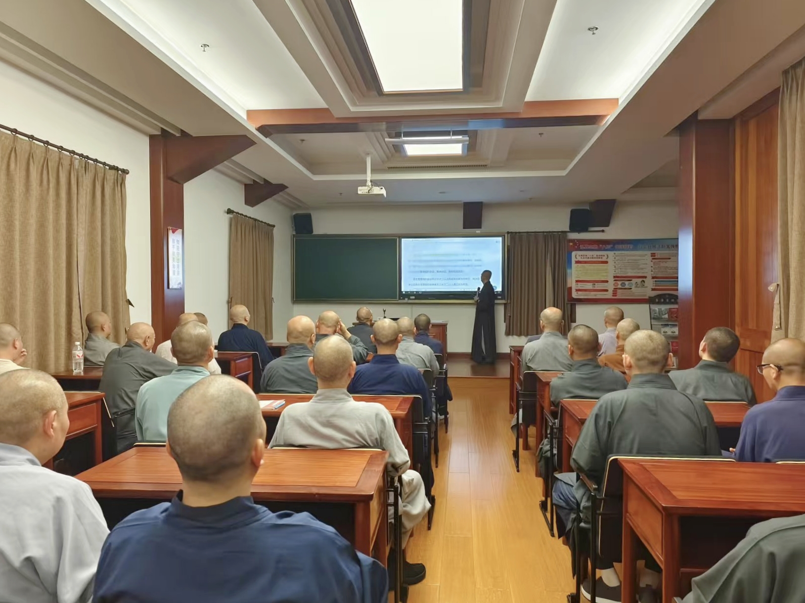 2025年7月2日晚7时,七塔禅寺全体僧众大会在禅学堂二楼教室隆重召开。